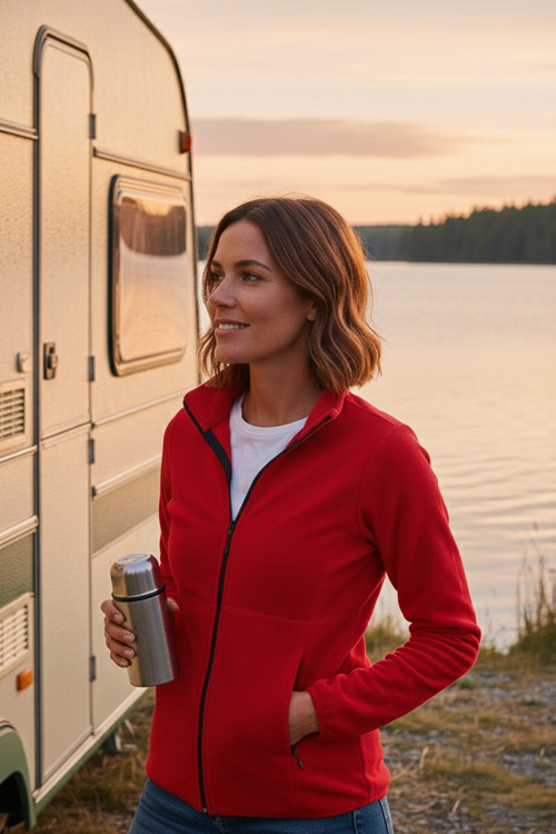 Slim Fit Anti-Pilling Tüylenme Yapmayan Fermuarlı  Polar Bayan Hırka 5907012 KIRMIZI