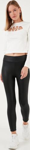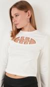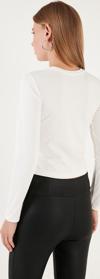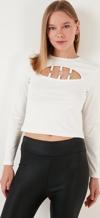 Lela Slim Fit Bisiklet Yaka Önü Pencereli Crop Bayan Bluz 5865399 BEYAZ