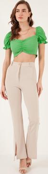 Lela Esnek Slim Fit Cut Out Pencereli Dik Yaka Crop Bayan Bluz 5865348 Olive