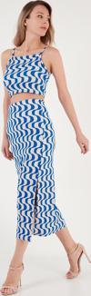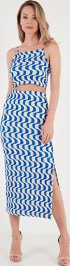 PayBuy Şık Manzara Desenli Viskoz Plaj Bluz Etek Takımı Yazlık Rahat Kombin Zarifane Tasarım Ve
