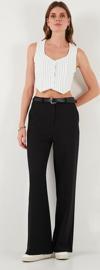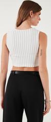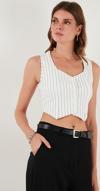 Lela Slim Fit Kalp Yaka Düğmeli Kalın Askılı Crop Bayan Yelek 5865497 SİYAH ÇİZGİLİ