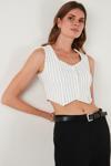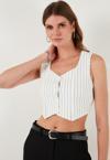 Slim Fit Kalp Yaka Düğmeli Kalın Askılı Crop Bayan Yelek 5865497 SİYAH ÇİZGİLİ