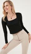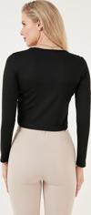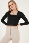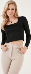 Lela Slim Fit Kare Yaka Crop Bayan Bluz 5865403 SİYAH