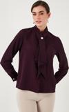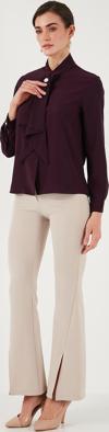 -Fularlı taşlı düğmeli yaka detayı