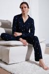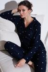 Streç Regular Fit Apaş Yaka Beli Lastikli Bayan Pijama Takımı 65720501 LACİVERT