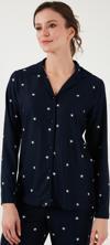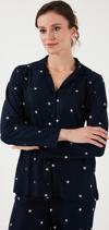 Lela Streç Regular Fit Apaş Yaka Beli Lastikli Bayan Pijama Takımı 65720501 LACİVERT