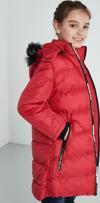 Lela Suya Dayanıklı Suni Kürklü Çıkarılabilir Kapüşonlu Dar Kesim Şişme Kız Çocuk Mont 5765020K KIRMIZI