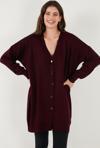 Lela V Yaka Düğmeli Triko Bayan Hırka 4616031 BORDO