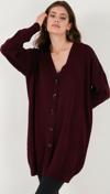 V Yaka Düğmeli Triko Bayan Hırka 4616031 BORDO