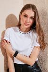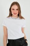 Yakası Baskılı Bisiklet Yaka Basic Örme Bayan T Shirt 5864054 BEYAZ