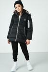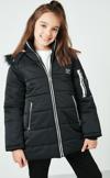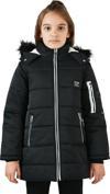 Lela Yakası Suni Kürklü Kapüşonlu Cepli Kız Çocuk Mont 6035054 SİYAH