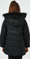 Yakası Suni Kürklü Kapüşonlu Cepli Kız Çocuk Mont 6035054 SİYAH