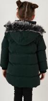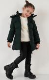 Lela Yakası Suni Kürklü Peluş Astarlı Çıkarılabilir Kapüşonlu Dar Kesim Kışlık Kız Çocuk Mont 5760002 HAKİ