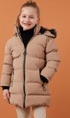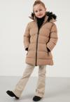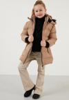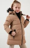 Lela Yakası Suni Kürklü Peluş Astarlı Çıkarılabilir Kapüşonlu Dar Kesim Kışlık Kız Çocuk Mont 5760002 VİZON