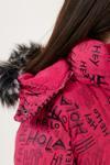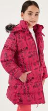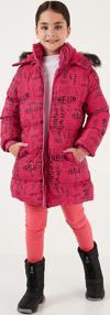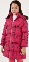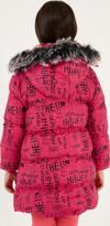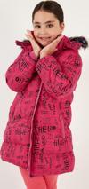 Lela Yakası Suni Kürklü Yazı Baskılı Çıkarılabilir Kapüşonlu Peluş Astarlı Kışlık Kız Çocuk Mont 5761984 FUŞYA