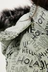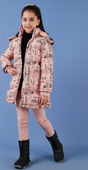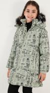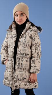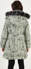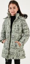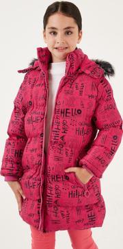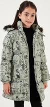 Lela Yakası Suni Kürklü Yazı Baskılı Çıkarılabilir Kapüşonlu Peluş Astarlı Kışlık Kız Çocuk Mont 5761984 MİNT