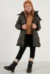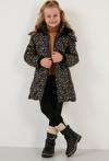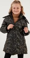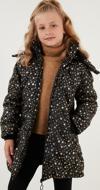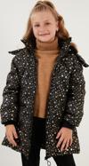 Lela Yakası Suni Kürklü Yıldız Desenli Çıkarılabilir Kapüşonlu Peluş Astarlı Kışlık Kız Çocuk Mont 5760050 SİYAH