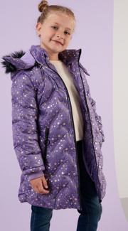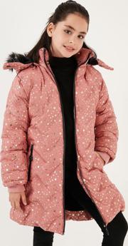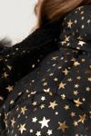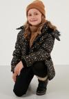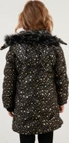 Lela Yakası Suni Kürklü Yıldız Desenli Çıkarılabilir Kapüşonlu Peluş Astarlı Kışlık Kız Çocuk Mont 5760050 SİYAH