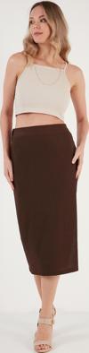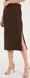 Lela Yüksek Bel Yırtmaçlı Dar Kesim Midi Bayan Etek 5865600 KAHVE