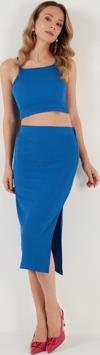 Lela Volanlı Midi Boy Yırtmaçlı Bayan Etek 6058387 İNDİGO