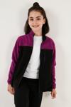 Lela Yumuşak Dokulu Fermuarlı Renk Bloklu Dik Yaka Cepli 2'li Paket Çocuk Polar 5905001S2 Mor Siyah-Şeker Pembe Gri