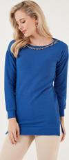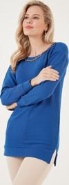 Zincir Detaylı Regular Fit Bisiklet Yaka Esnek Bayan Bluz 5865347 SAKS