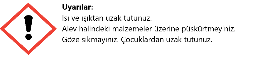 Dikkat:Isı ve Işıktan uzak tutun, göze sıkmakyın, aleve püskürtmeyin