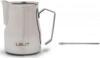 Latte sanat kalemiyle tamamlanmış büyük boy paslanmaz çelik süt kabı (75cl).