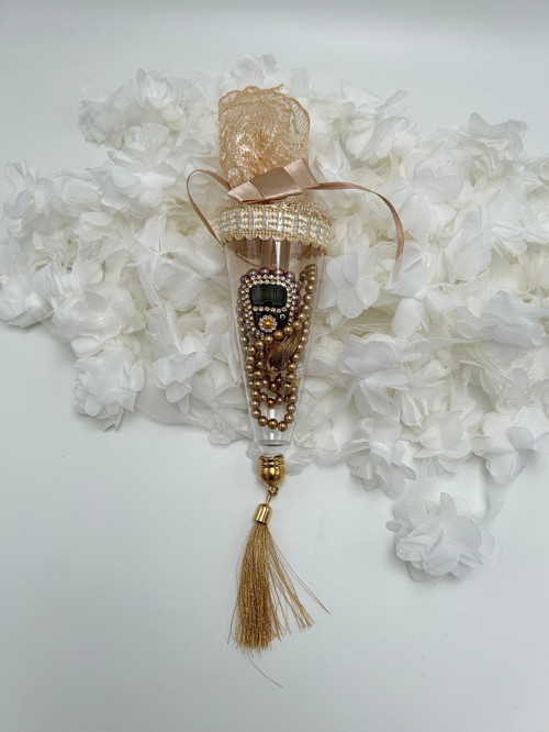 Lena Gift Workshop 1 Adet Gold Hediyelik Dantelli Külah, Tesbih Ve Taşlı Zikirmatik Seti ( Mevlid - Hac - Umre )