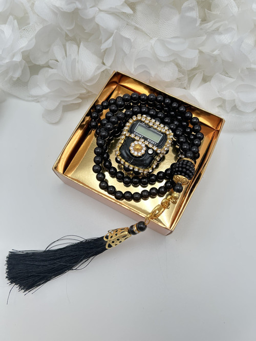 Lena Gift Workshop 1 Adet Siyah Hediyelik Çeyizlik Kutulu Tesbih Ve Taşlı Zikirmatik Seti ( Mevlit-Sünnet-Hac-Umre)