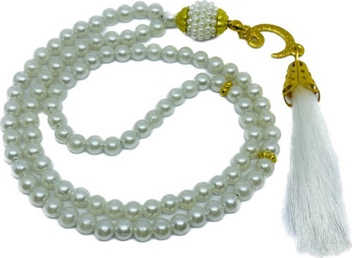 Lena Gift Workshop 10 Adet Hediyelik Vavlı Beyaz Püsküllü Plastik Inci 99'Lu Namaz Tesbihi ( Mevlit-Sünnet-Hac-Umre)