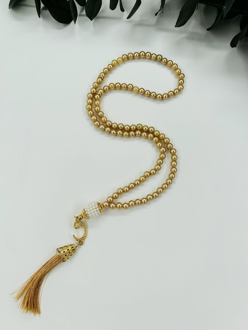 Lena Gift Workshop 10 Adet Hediyelik Vavlı Püsküllü Gold Plastik Inci 99'Lu Namaz Tesbihi ( Mevlit-Sünnet-Hac-Umre)