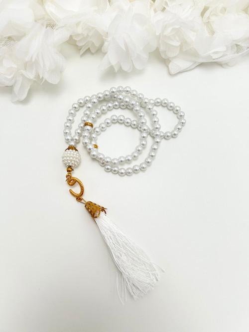 Lena Gift Workshop 100 Adet Beyaz Hediyelik Vavlı Püsküllü Plastik İnci Namaz Tesbihi ( Mevlit-Sünnet-Hac-Umre)