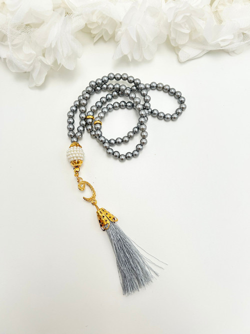 Lena Gift Workshop 50 Adet Gri Hediyelik Vavlı Püsküllü Plastik İnci Namaz Tesbihi ( Mevlit-Sünnet-Hac-Umre)