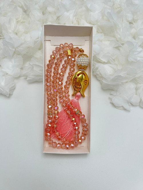 Pembe Çeyizlik Hediyelik Kutulu Kristal Tesbih ( Hac - Umre - Mevlid - Bohça )