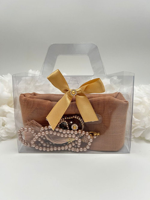 Lenatoptan 1 Adet Çanta Görünümlü Kutu İçinde Flamlı Örtü, İnci Tesbih Ve Taşlı Zikirmatik Hediyelik Set