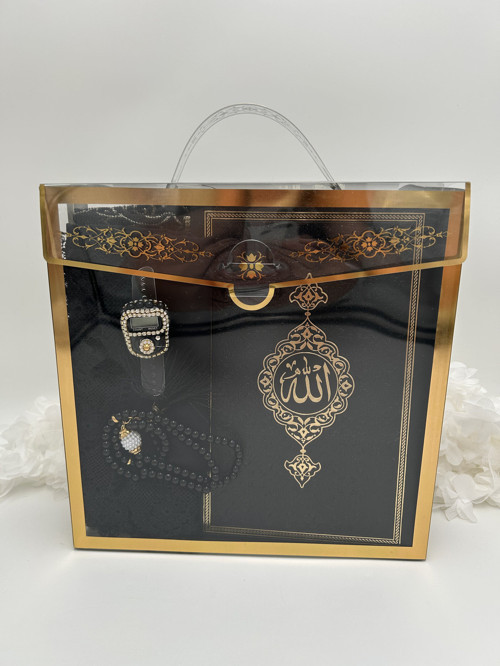 Lenatoptan 10 Adet Çanta Görünümlü Kutu İçinde Flamlı Örtü, İnci Tesbih Ve Taşlı Zikirmatik Hediyelik Set - Image 1