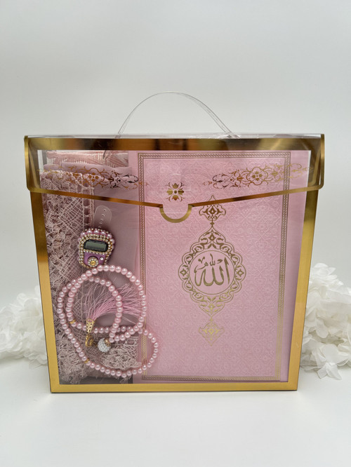 Lenatoptan 10 Adet Çanta Görünümlü Kutu İçinde Flamlı Örtü, İnci Tesbih Ve Taşlı Zikirmatik Hediyelik Set