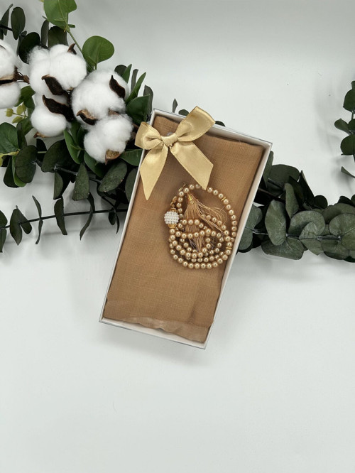 Flamlı örtüsüyle birlikte gelen set, tesbihi korurken aynı zamanda şık bir görünüm kazandırarak görsel bir zenginlik katar.