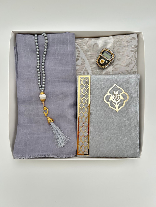 Lenatoptan Gri Çeyizlik Hediyelik 5 Parça Gelin Damat Bohça Seti Namaz Örtüsü Seccade Tesbih Yasin Zikirmatik