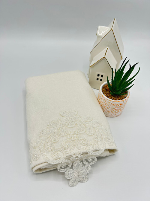 Lenatoptan Güpürlü Dantelli 50X90 Cm Kadife Havlu ( Bohçalık - Çeyizlik - Hediyelik )