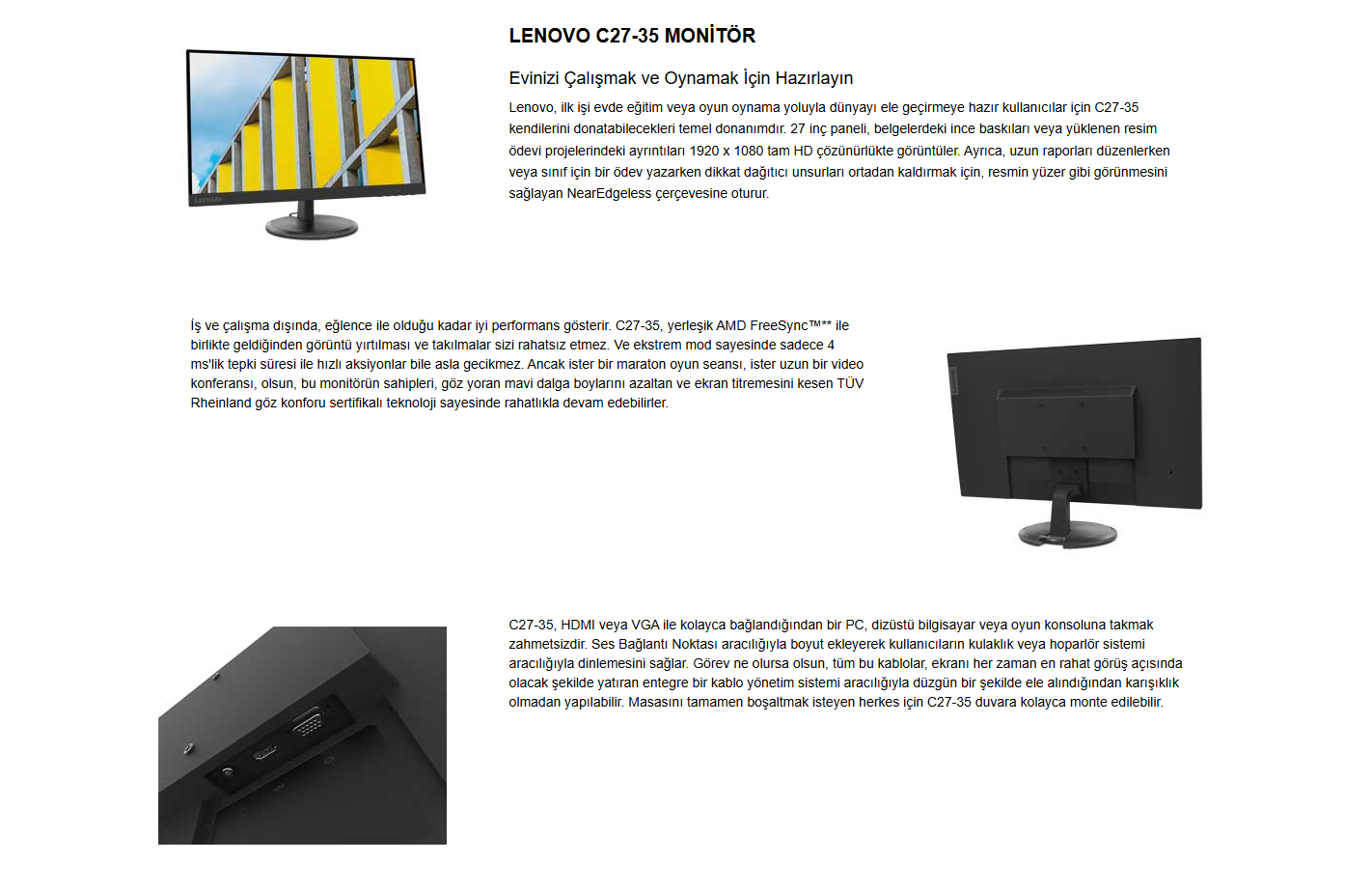 LENOVO 27" C27-35 66BAKAC6TK 4MS 75HZ HDMI+VGA FULLHD FREESYNC VA MONITOR