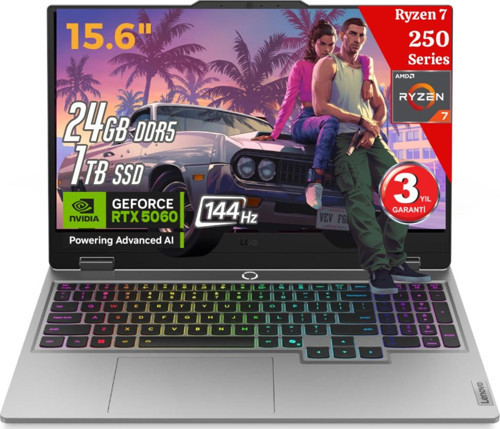 Lenovo Loq 15Ahp10 Aı Amd Ryzen7 250 24Gb 1Tb Rtx5060 15.6Fhd 144Hz Freedos 83Jg006Ftr Gaming Bilgisayar