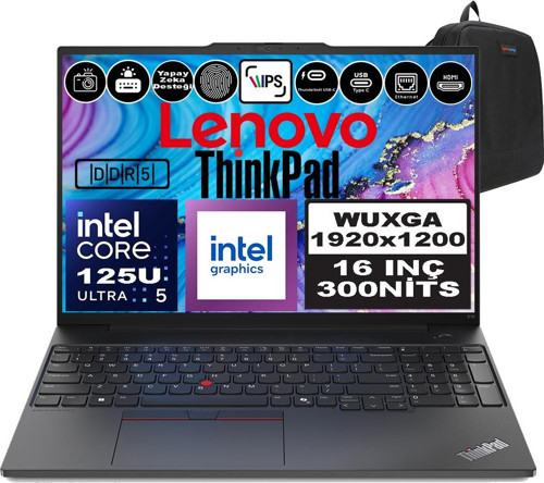 Lenovo Thinkpad E16 Gen2 Intel Core Ultra 5 125U Ddr5 64GB 1tb SSD Intel® Aı Boost 16" Wuxga IPS Windows 11 Pro Taşınabilir Bilgisayar 21MA003MTXP22 + Zetta Çanta