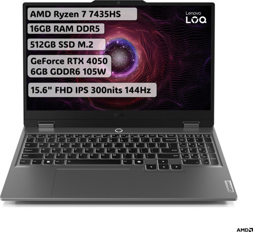 Lenovo LOQ AMD Ryzen 7 7435HS 16GB 512GB SSD RTX4050 Freedos 15.6" Taşınabilir Bilgisayar 83JC006BTR
