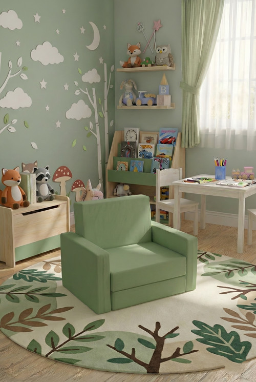Lensa Home Çocuk Koltuğu Komple Sünger Katlanabilir Yataklı Minder Yatak (0-4 YAŞ) HAKİ YEŞİLİ