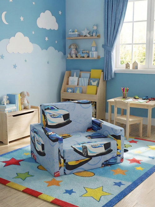 Lensa Home Çocuk Koltuğu Komple Sünger Katlanabilir Yataklı Minder Yatak (0-4 YAŞ) MAVİ ARABA