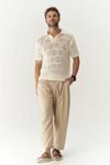 Katlı Yakalı, Triko T-shirt, Fitilli Şeritli Rahat ve Kullanışlı Kalıp, Standart Beden, Likralı (Her Vücut Tipine Uygun)