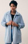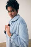 Sateen Leopar Astarlı Peluş Kaban - Bebe Mavi