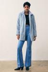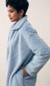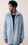 Düz yaka, uzun kol, kalça altı boy, cepli, leopar astarlı, peluş kaban.